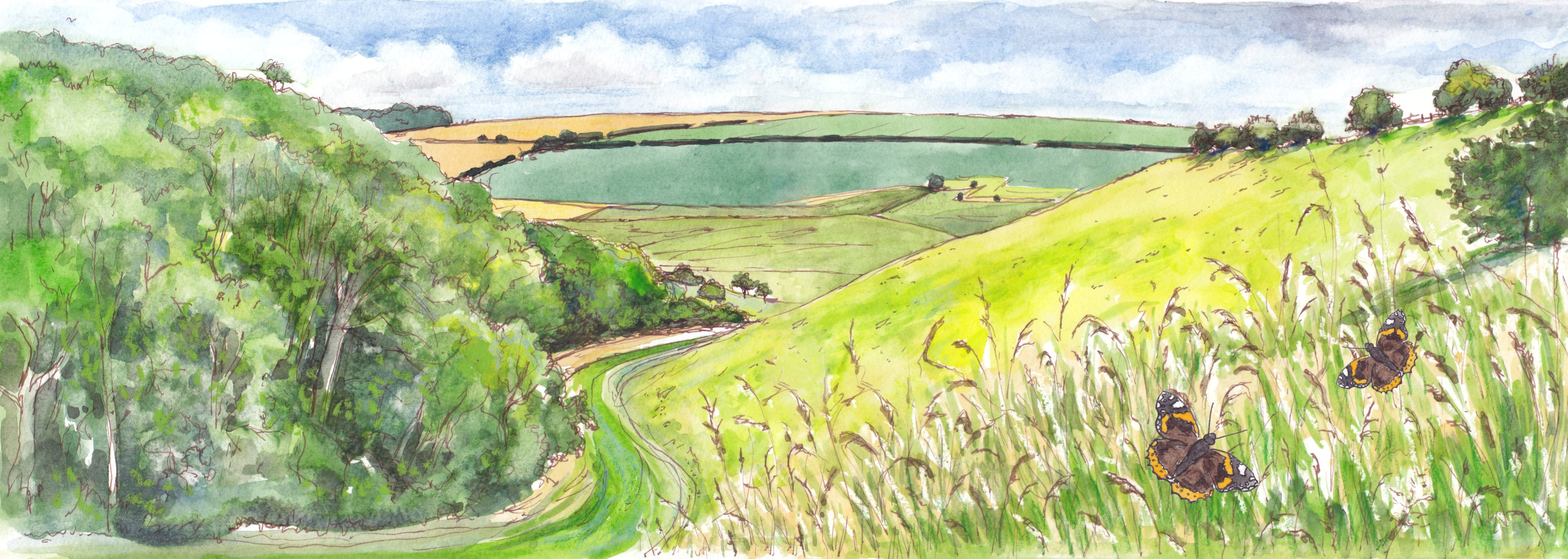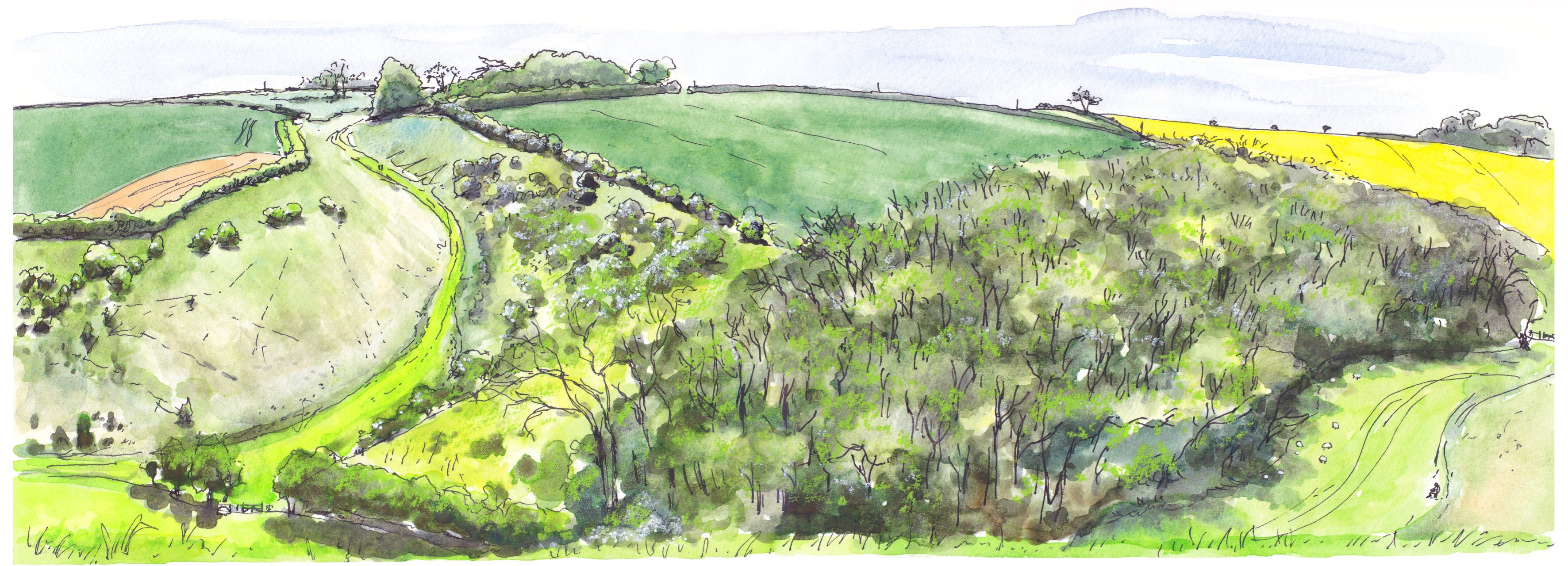 On location sketches made whilst walking in the Yorkshire Wolds